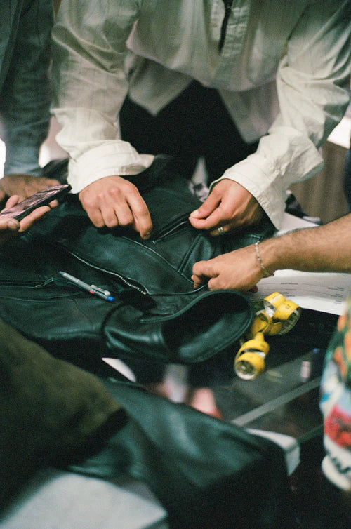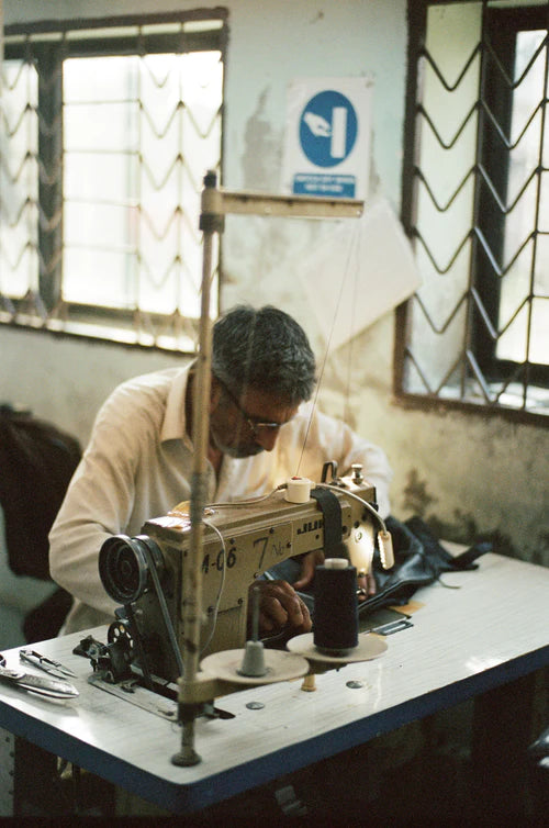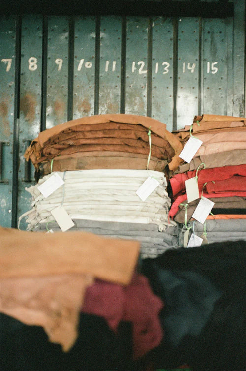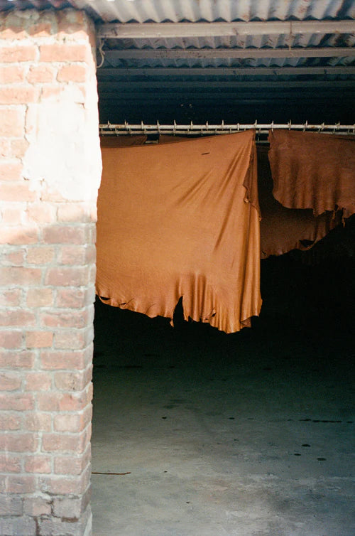 FOUND's dedication extends beyond its factory doors, collaborating with a diverse array of artisans and craftsmen, many from our homeland of Pakistan, known to have some of the worlds best leathers. Spotlighting rich and time-honored talents through meticulously crafted and mindful clothing pieces, every aspect of our production process is thoughtfully examined, with minimal waste generated. Fabric offcuts and discarded materials find new life as linings, stuffing, hangtags, and packaging, reflecting their commitment to sustainability.