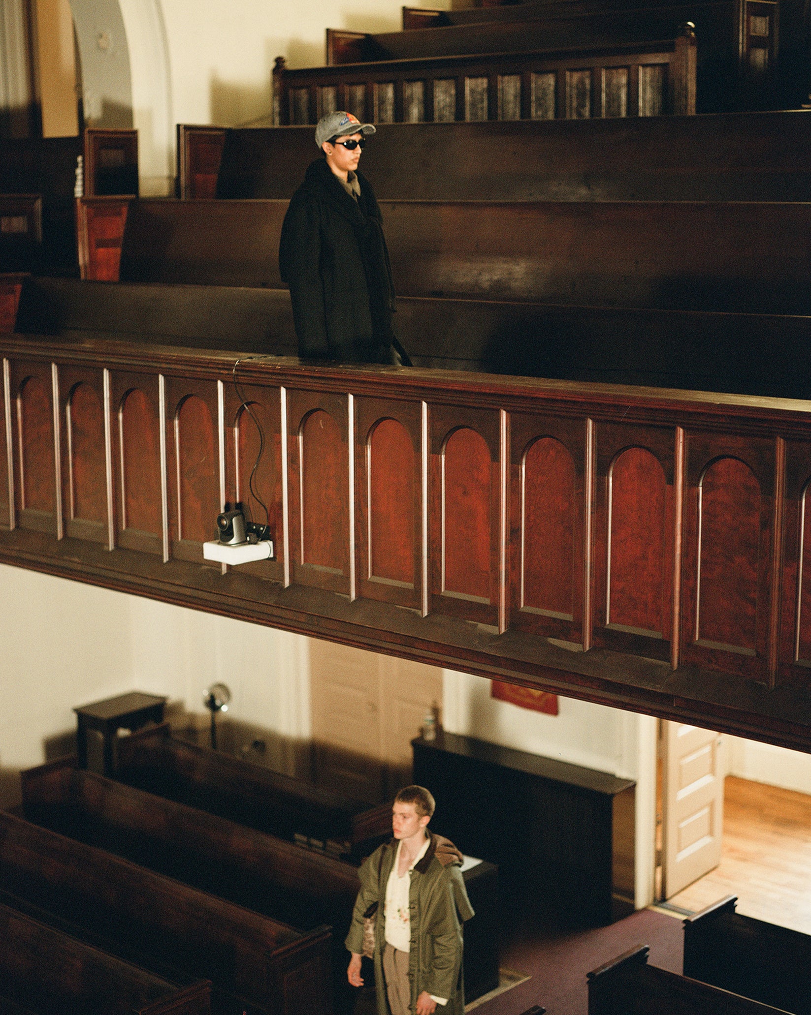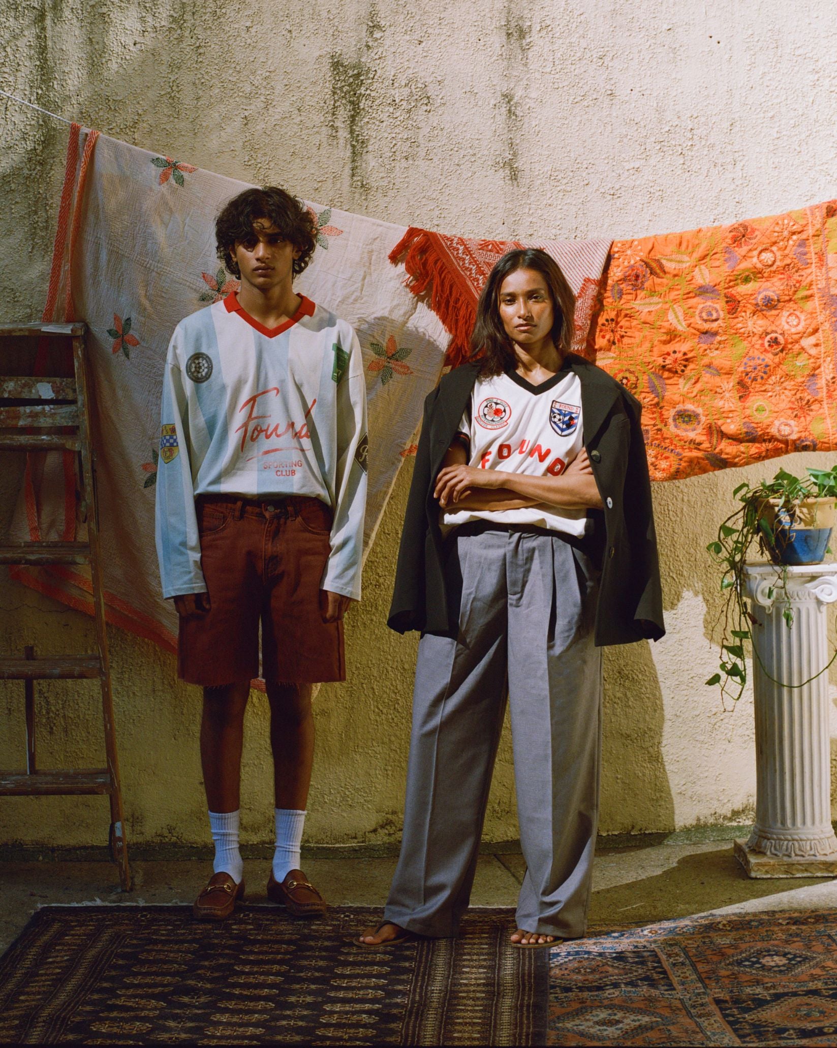 Our double layer hoodie is inspired by the customization of athletic uniforms and replicated the look of wearing a sweatshirt beneath a tee shirt. Made from mid-weight 100% french terry cotton. The garment fits slightly wide and boxy and has been washed for a vintage look and feel.